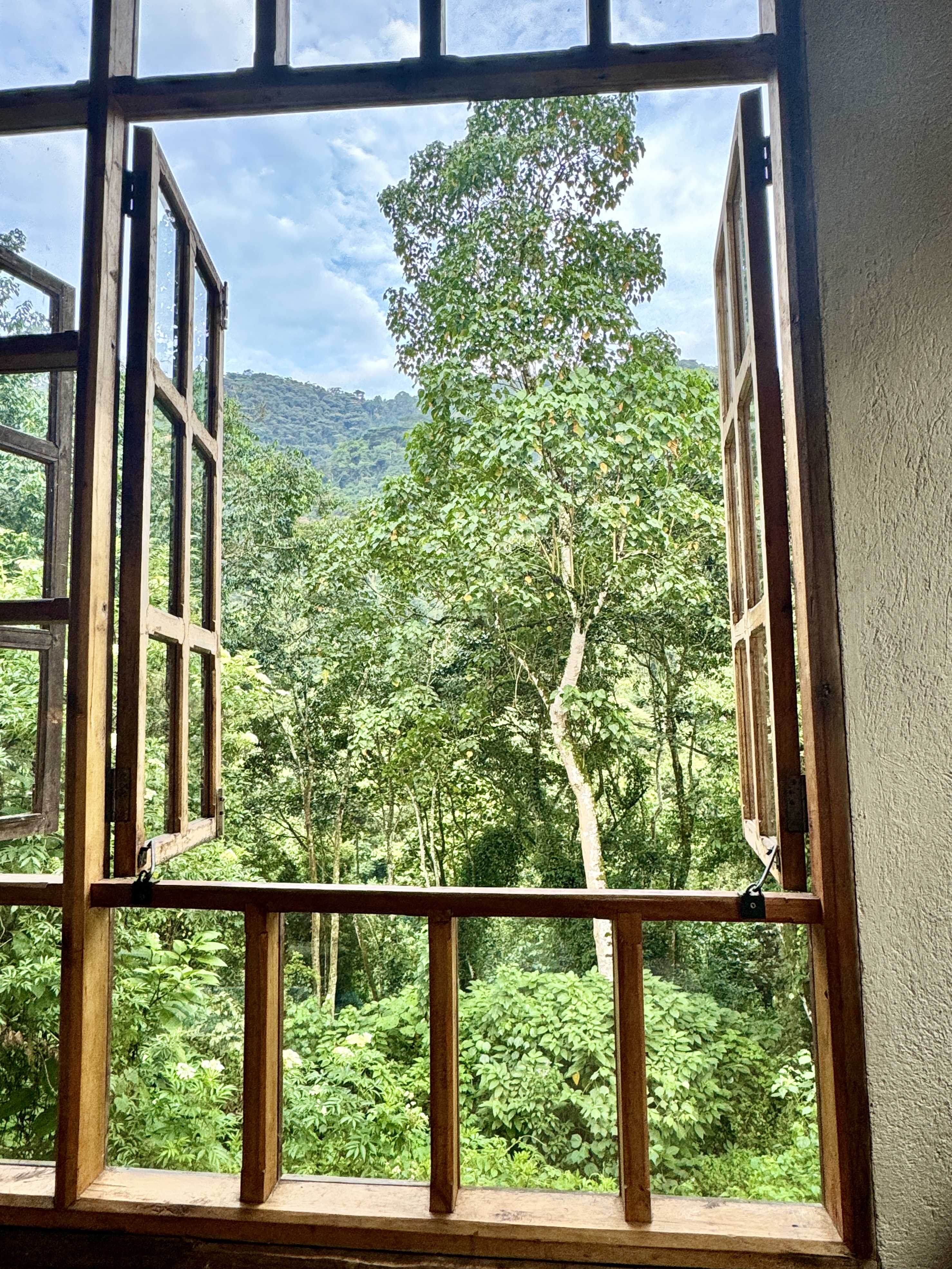 We transferred about 90 minutes to Volcanoes Lodge, passing countless banana plantations, rolling hills, and children waving.