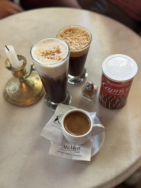 From there, we walked toward Plaka where we stopped at Melina for traditional Greek coffee. The café is a charming bistro dedicated to the life and legacy of the Greek actress, singer, and politician Melina Mercouri. The cozy ambiance features photographs and memorabilia from her career and serves as a tribute to her contributions to Greek culture and politics.